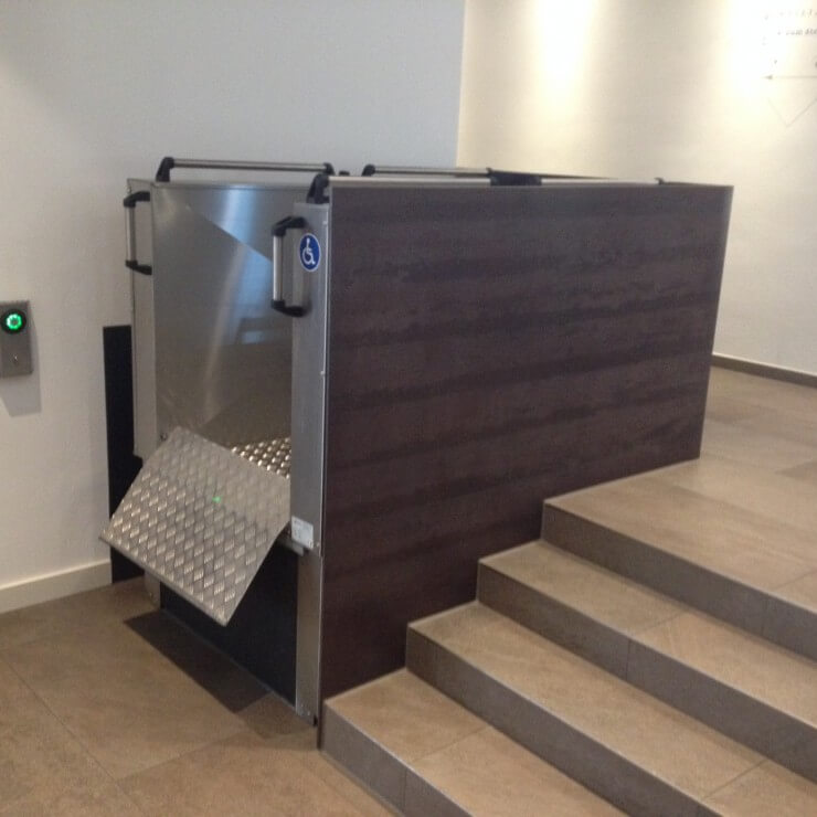 Zum Überwinden kleinerer Hindernisse wie Außentreppen empfehlen wir unsere sogenannten Hublifte. Diese Rollstuhllifte fahren senkrecht in die Höhe und werden nicht auf, sondern neben der Treppe installiert. Das macht sie zu einer sehr kostengünstigen Alternative und auch dort interessant, wo gar keine Treppe vorhanden ist – beispielsweise für Eingänge über Ihre Terrasse.